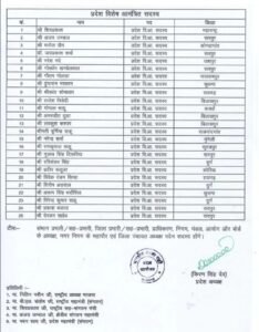 | सूची में प्रमुख रूप से सी एम विष्णु देव साय सरोज पांडे लता हुसैनी अरुण साव विजय शर्मा टोकन साहू रमेश बेस देवेंद्र प्रताप सिंह लक्ष्मी वर्मा बृजमोहन अग्रवाल सहित कई वरिष्ठ और सक्रिय नेताओं को शामिल किया गया है | इसके अलावा संगठन में नई और जमीनी पकड़ रखने वाले चेहरों को भी मौका दिया गया है|                                   देखिए लिस्ट:-[ घोषित सूची में प्रदेश के अलग-अलग जिलों से नेताओं को शामिल किया गया है| जिससे संगठन में क्षेत्रीय संतुलन साधने की कोशिश की गई है |